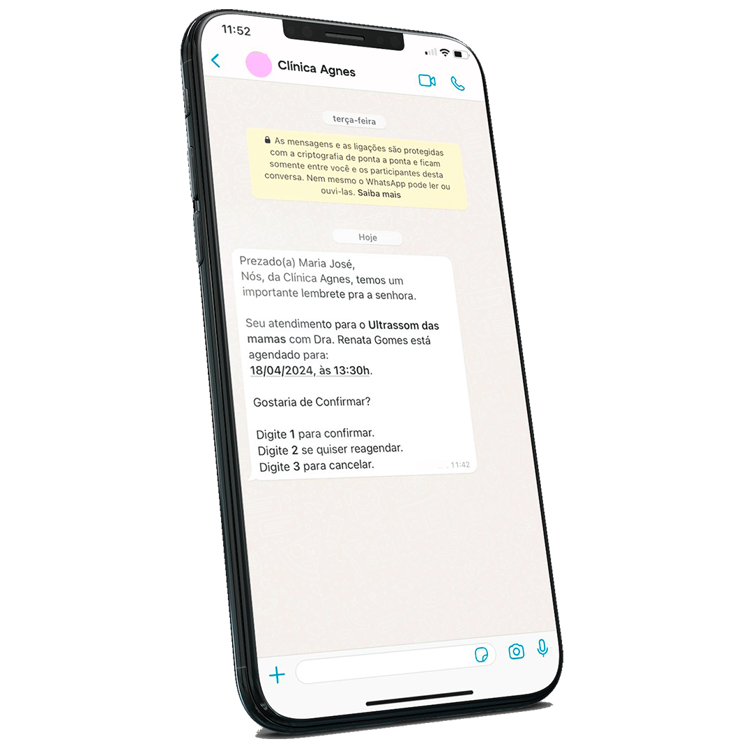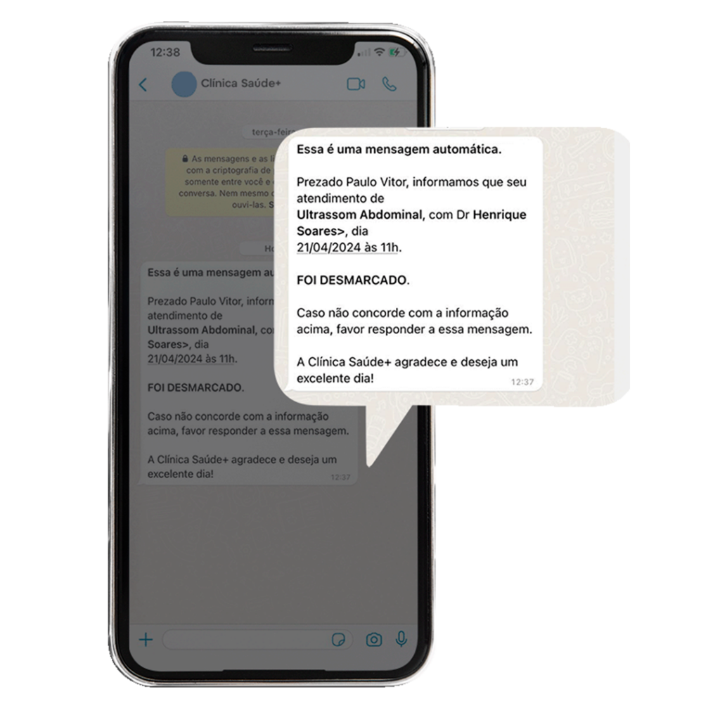 Mensagens automáticas por Whatsapp para os pacientes.