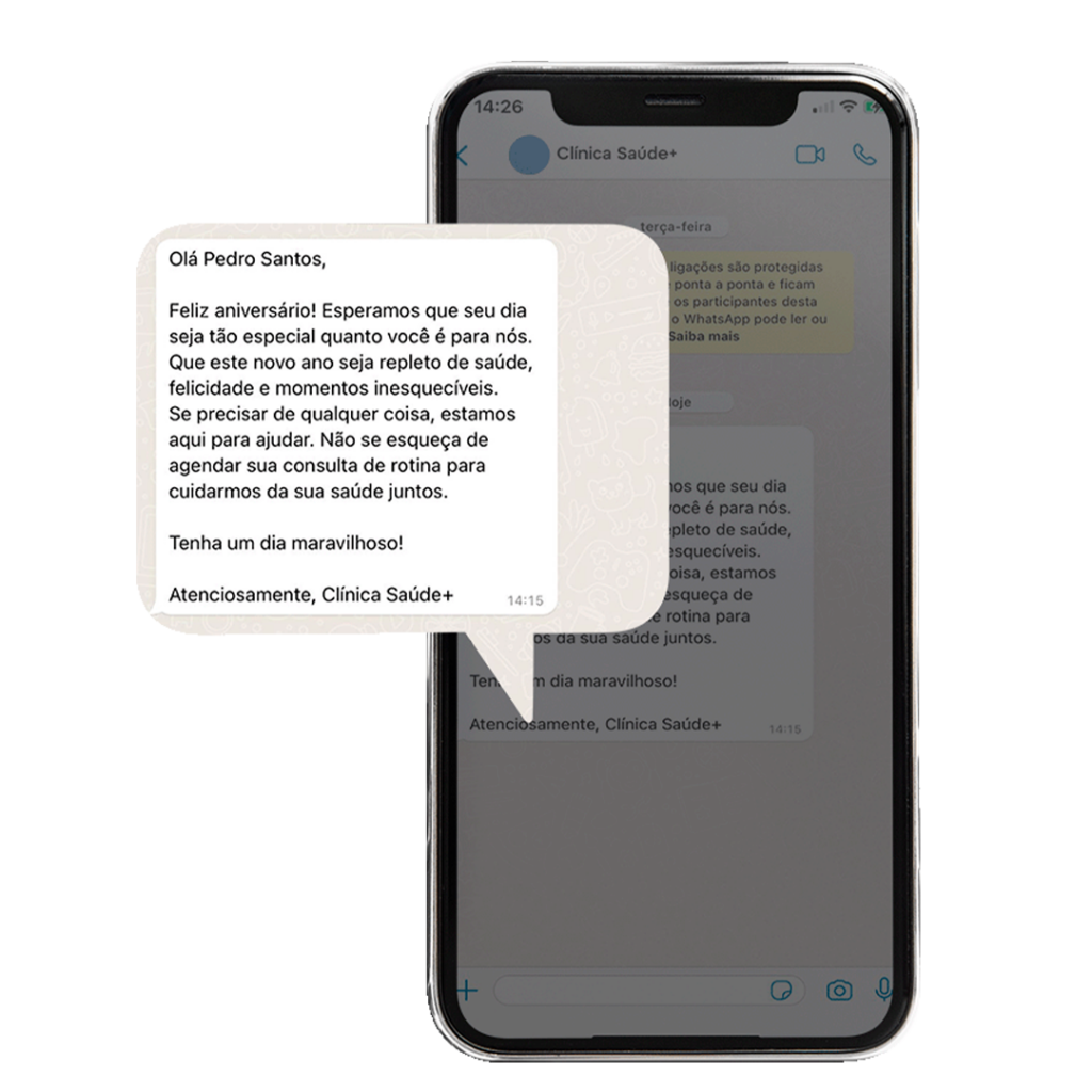 Surpreenda o paciente com mensagens de aniversário programadas no sistema.